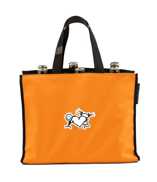 BEER CARRIER - bag for beer with design 543 LOVE in color SIGNAL ORANGE