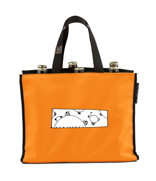 BEER CARRIER - bag for beer with design 55 CYCLOCOSMOS in color SIGNAL ORANGE