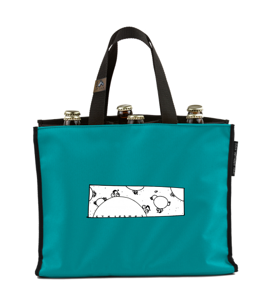BEER CARRIER - bag for beer with design 55 CYCLOCOSMOS in color TURQUOISE