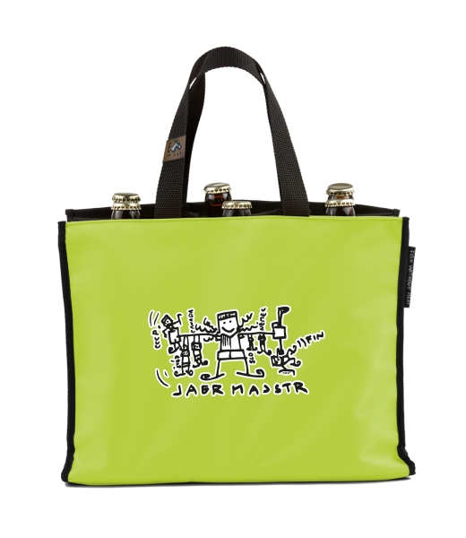 BEER CARRIER - bag for beer with design 556 JAGRMAJSTR in color GREEN LIMET