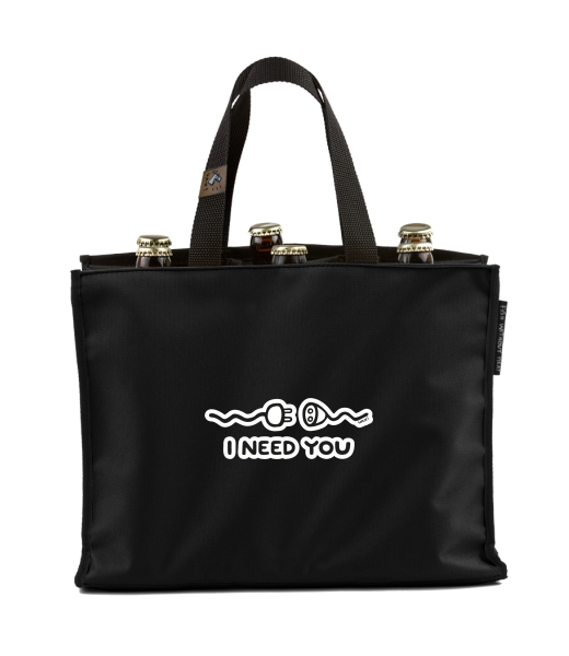 BEER CARRIER - bag for beer with design 581 I NEED YOU in color BLACK