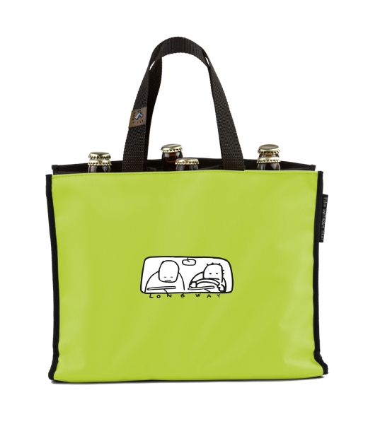 BEER CARRIER - bag for beer with design 84 LONG WAY in color GREEN LIMET