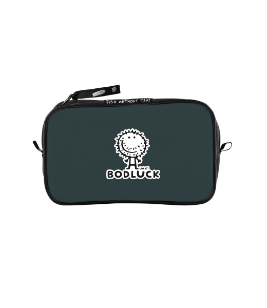 UAX Unisex sizes M cosmetic bag with design 1002 BODLUCK in color GREY INK