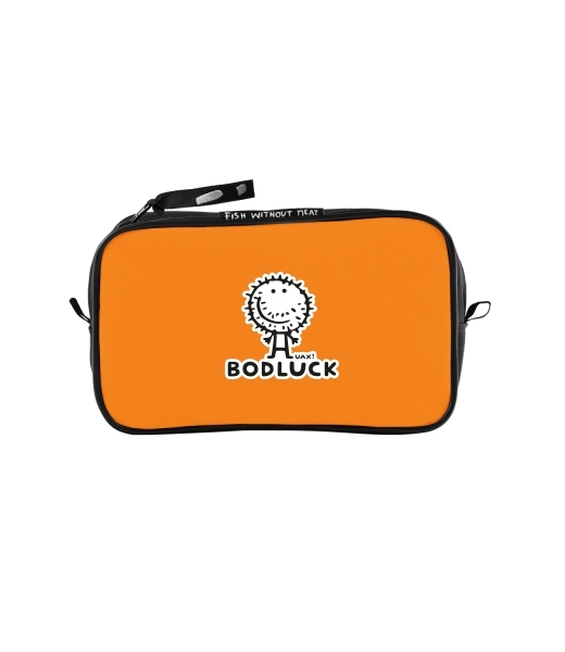 UAX Unisex sizes M cosmetic bag with design 1002 BODLUCK in color SIGNAL ORANGE