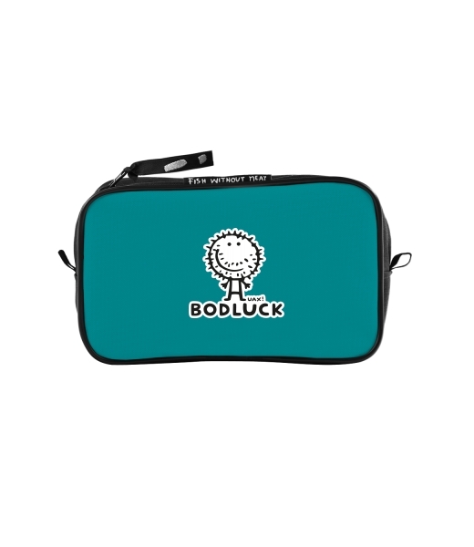 UAX Unisex sizes M cosmetic bag with design 1002 BODLUCK in color TURQUOISE