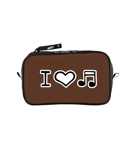 UAX Unisex sizes M cosmetic bag with design 1067 I LOVE MUSIC in color BROWN SUGAR