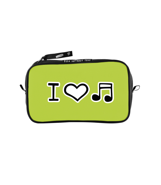 UAX Unisex sizes M cosmetic bag with design 1067 I LOVE MUSIC in color GREEN LIMET