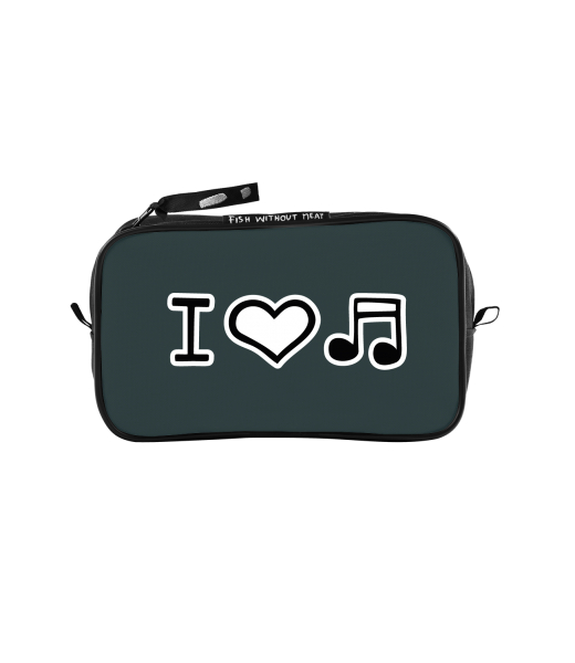 UAX Unisex sizes M cosmetic bag with design 1067 I LOVE MUSIC in color GREY INK