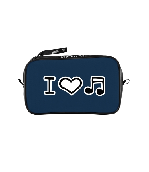 UAX Unisex sizes M cosmetic bag with design 1067 I LOVE MUSIC in color MIDNIGHT BLUE