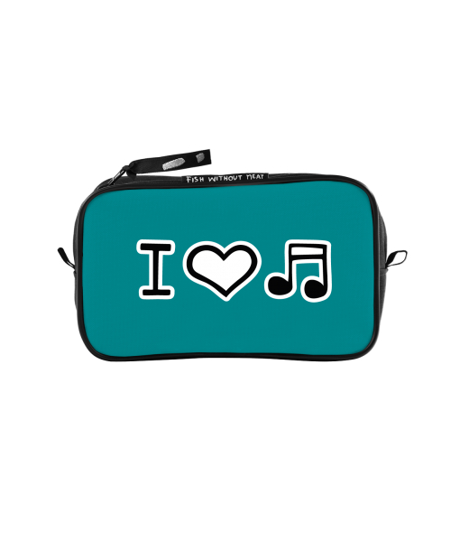 UAX Unisex sizes M cosmetic bag with design 1067 I LOVE MUSIC in color TURQUOISE
