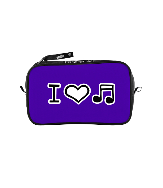 UAX Unisex sizes M cosmetic bag with design 1067 I LOVE MUSIC in color VIOLET