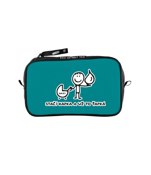 UAX Unisex sizes M cosmetic bag with design 1081 STAČÍ KAPKA A UŽ TO ŤAPKÁ in color TURQUOISE