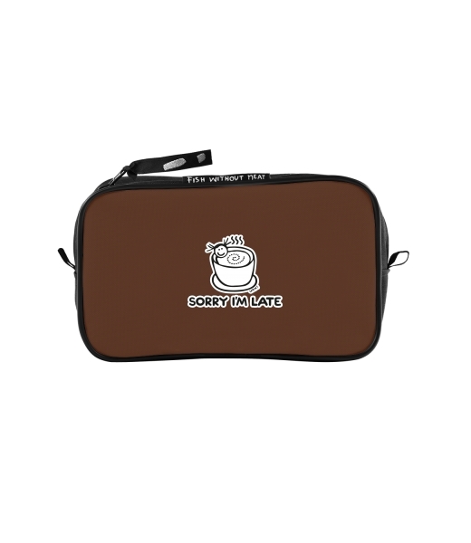 UAX Unisex sizes M cosmetic bag with design 1087 SORRY IM LATE in color BROWN SUGAR