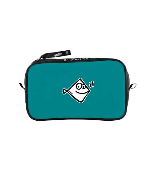 UAX Unisex sizes M cosmetic bag with design 1111 PIRANHA in color TURQUOISE