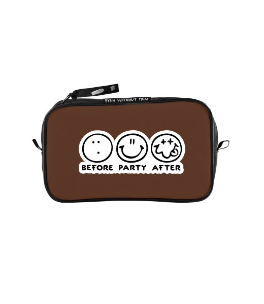 UAX Unisex sizes M cosmetic bag with design 1120 BEFORE PARTY AFTER in color BROWN SUGAR