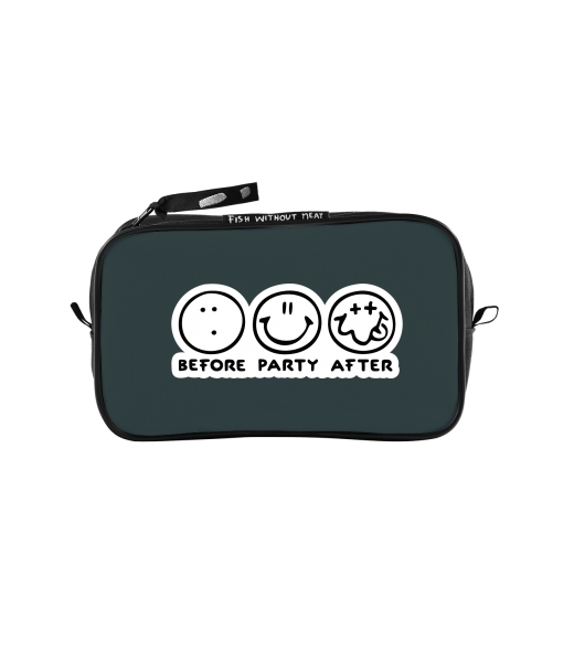 UAX Unisex sizes M cosmetic bag with design 1120 BEFORE PARTY AFTER in color GREY INK