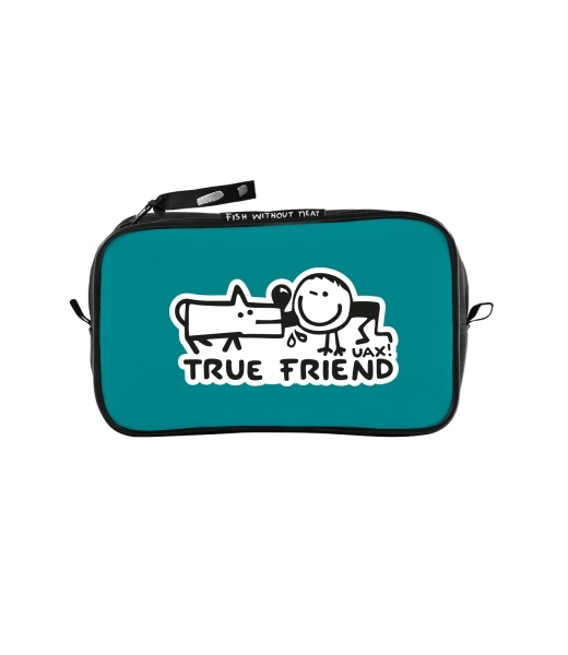 UAX Unisex sizes M cosmetic bag with design 1123 TRUE FRIEND in color TURQUOISE