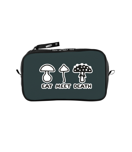 UAX Unisex sizes M cosmetic bag with design 1177 EAT MEET DEATH in color GREY INK