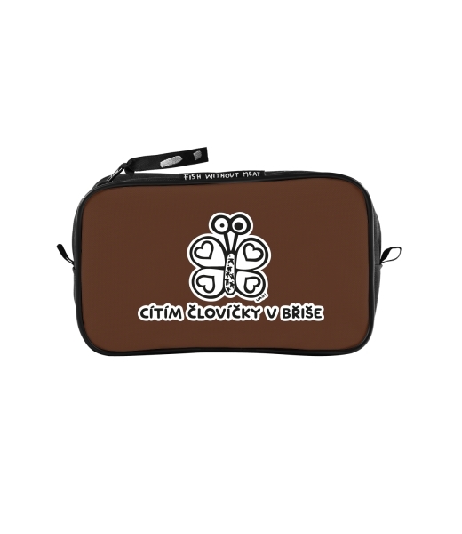 UAX Unisex sizes M cosmetic bag with design 1188 CÍTÍM ČLOVÍČKY V BŘIŠE in color BROWN SUGAR