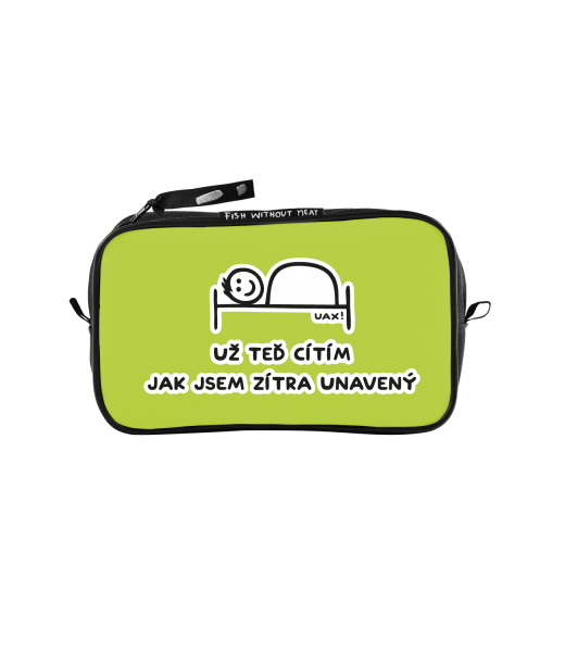 UAX Unisex sizes M cosmetic bag with design 1200 UŽ TEĎ CÍTÍM JAK JSEM ZÍTRA UNAVENÝ in color GREEN LIMET