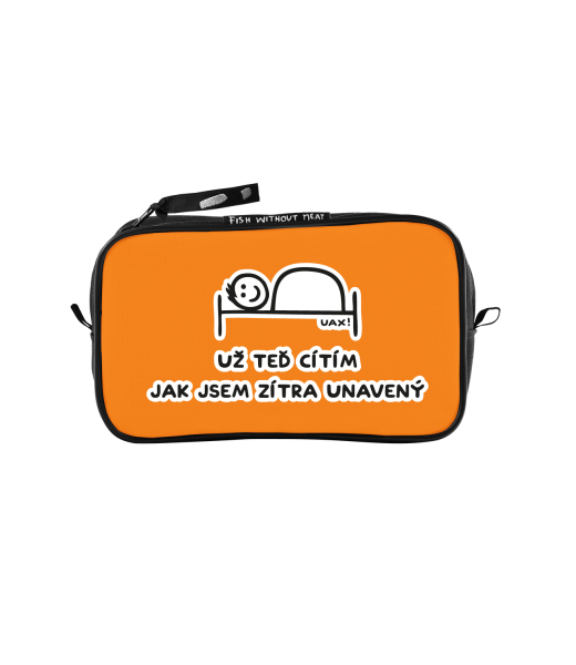 UAX Unisex sizes M cosmetic bag with design 1200 UŽ TEĎ CÍTÍM JAK JSEM ZÍTRA UNAVENÝ in color SIGNAL ORANGE