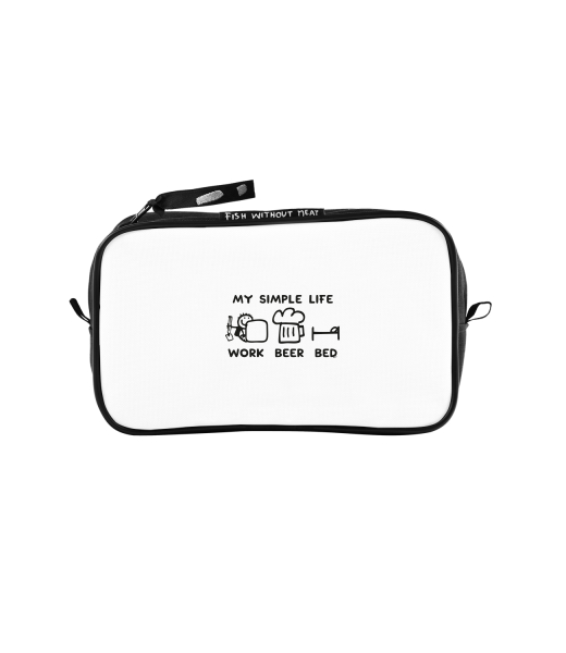UAX Unisex sizes M cosmetic bag with design 1211 MY SIMPLE LIFE WORK BEER BED in color WHITE