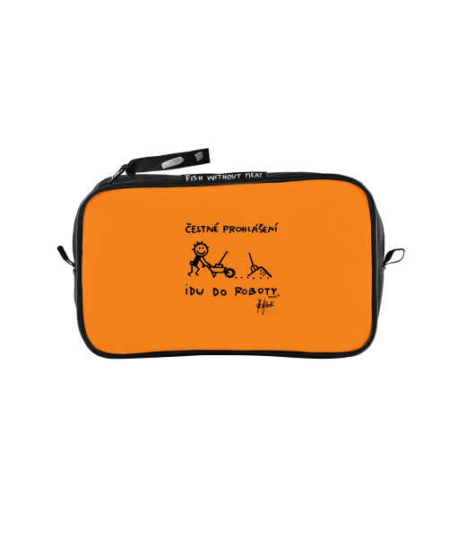 UAX Unisex sizes M cosmetic bag with design 1303 ČESTNÉ PROHLÁŠENÍ IDU DO ROBOTY in color SIGNAL ORANGE