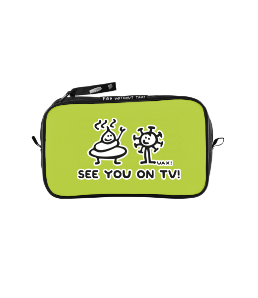 UAX Unisex sizes M cosmetic bag with design 1306 SEE YOU ON TV in color GREEN LIMET
