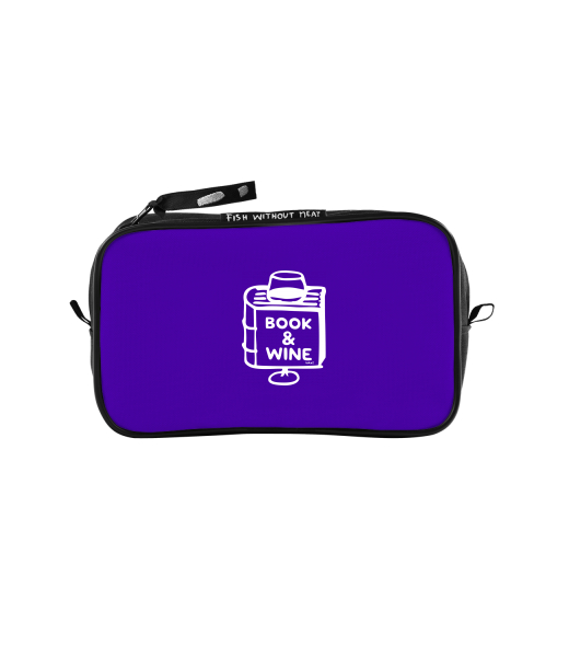 UAX Unisex sizes M cosmetic bag with design 1322 BOOK AND WINE in color VIOLET