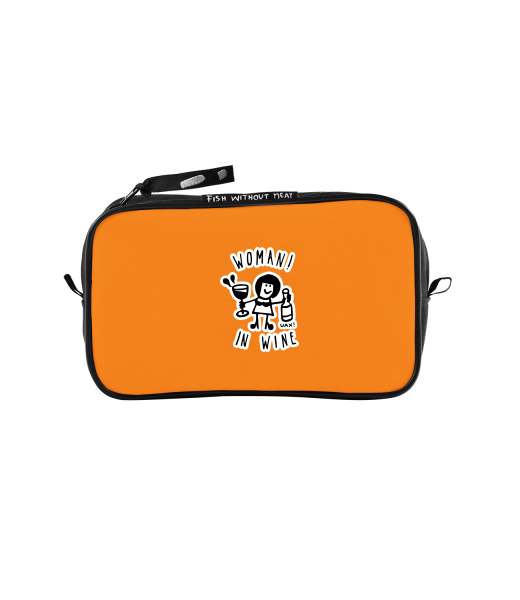 UAX Unisex sizes M cosmetic bag with design 1347 WOMAN IN WINE 2 in color SIGNAL ORANGE