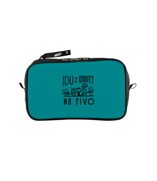 UAX Unisex sizes M cosmetic bag with design 1369 IDU Z ROBOTY NA PIVO in color TURQUOISE