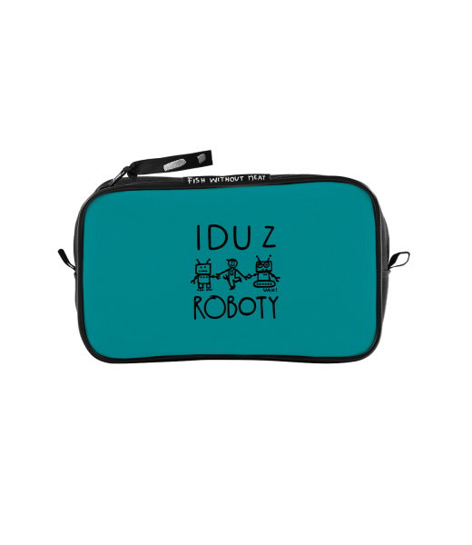 UAX Unisex sizes M cosmetic bag with design 1377 IDU Z ROBOTY 2 in color TURQUOISE