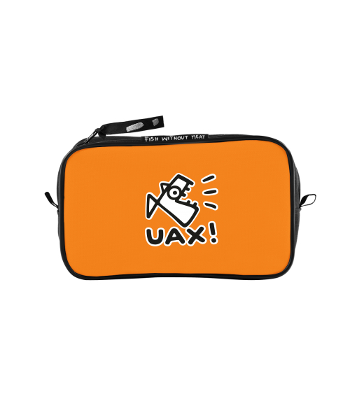 UAX Unisex sizes M cosmetic bag with design 412 LOGO UAX! SMALL in color SIGNAL ORANGE