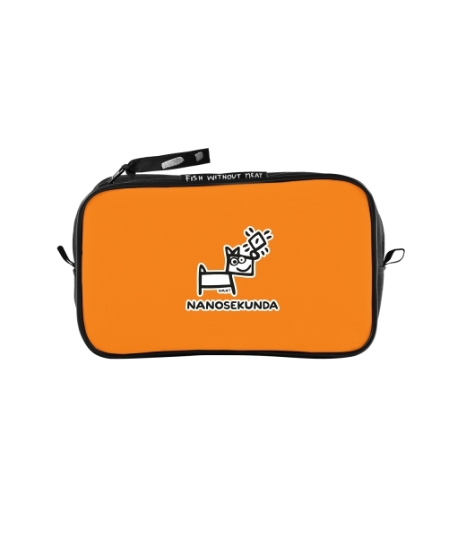 UAX Unisex sizes M cosmetic bag with design 516 NANOSEKUNDA in color SIGNAL ORANGE