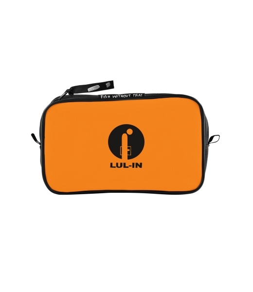 UAX Unisex sizes M cosmetic bag with design 620 LUL IN in color SIGNAL ORANGE