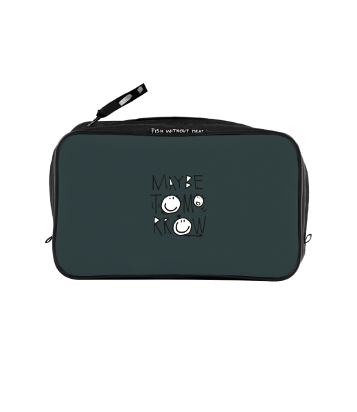 UAX Unisex sizes XL cosmetic bag with printing and pocket with design 1001 MAYBE TOMORROW in color GREY INK