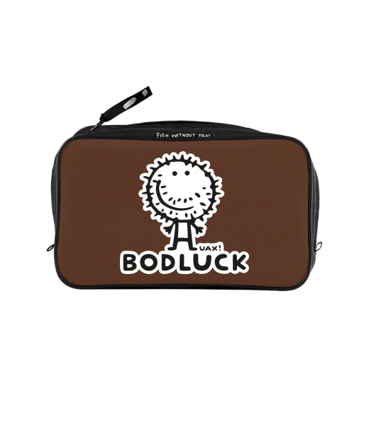 UAX Unisex sizes XL cosmetic bag with printing and pocket with design 1002 BODLUCK in color BROWN SUGAR