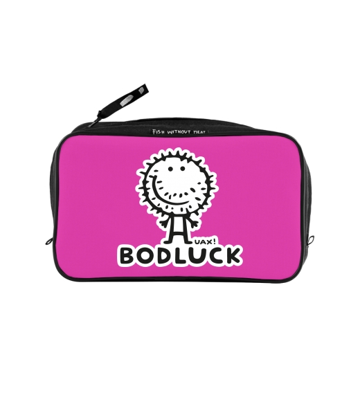 UAX Unisex sizes XL cosmetic bag with printing and pocket with design 1002 BODLUCK in color INDIAN LILA