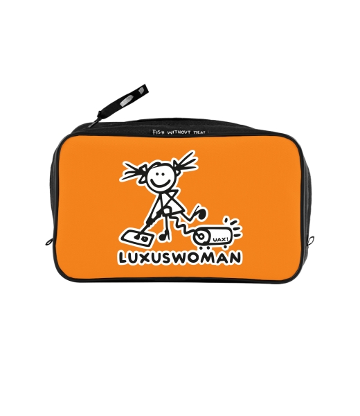 UAX Unisex sizes XL cosmetic bag with printing and pocket with design 1014 LUXUSWOMEN in color SIGNAL ORANGE