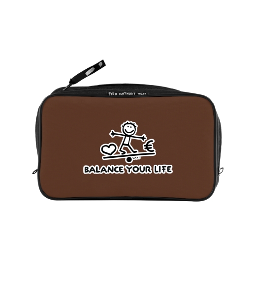 UAX Unisex sizes XL cosmetic bag with printing and pocket with design 1039 BALANCE YOUR LIFE in color BROWN SUGAR