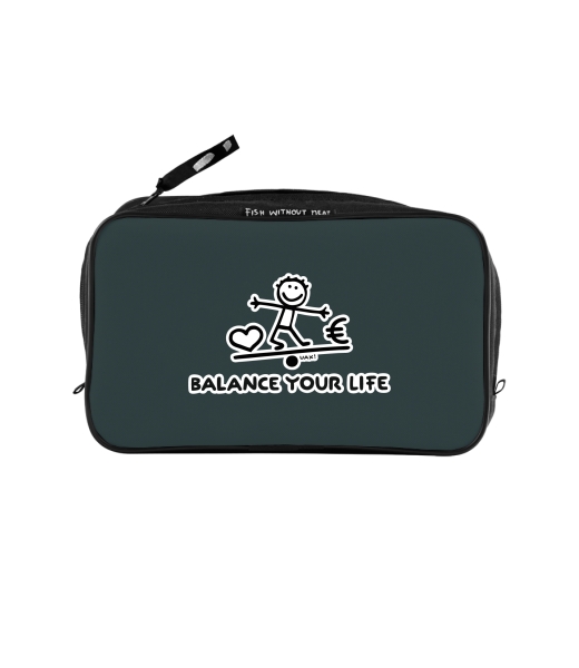 UAX Unisex sizes XL cosmetic bag with printing and pocket with design 1039 BALANCE YOUR LIFE in color GREY INK