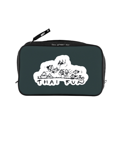 UAX Unisex sizes XL cosmetic bag with printing and pocket with design 1041 THAI FUN in color GREY INK