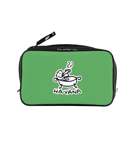 UAX Unisex sizes XL cosmetic bag with printing and pocket with design 1043 HA-VANA in color BRIGHT GREEN