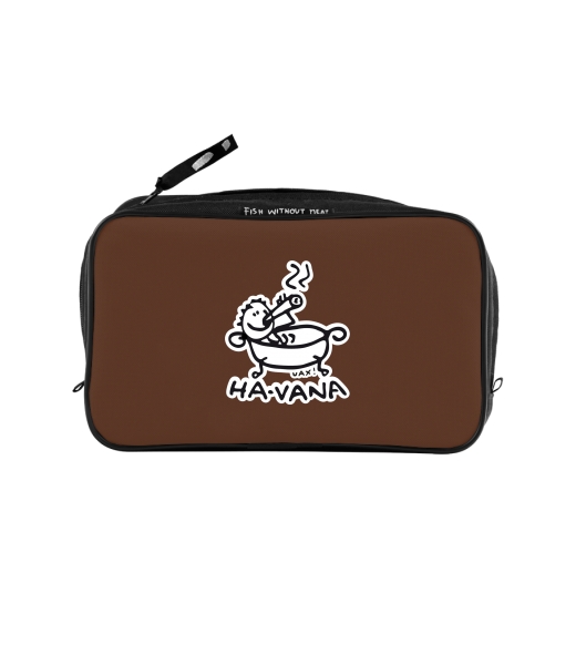 UAX Unisex sizes XL cosmetic bag with printing and pocket with design 1043 HA-VANA in color BROWN SUGAR