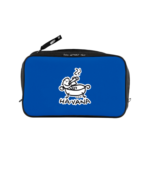 UAX Unisex sizes XL cosmetic bag with printing and pocket with design 1043 HA-VANA in color CLASSIC BLUE