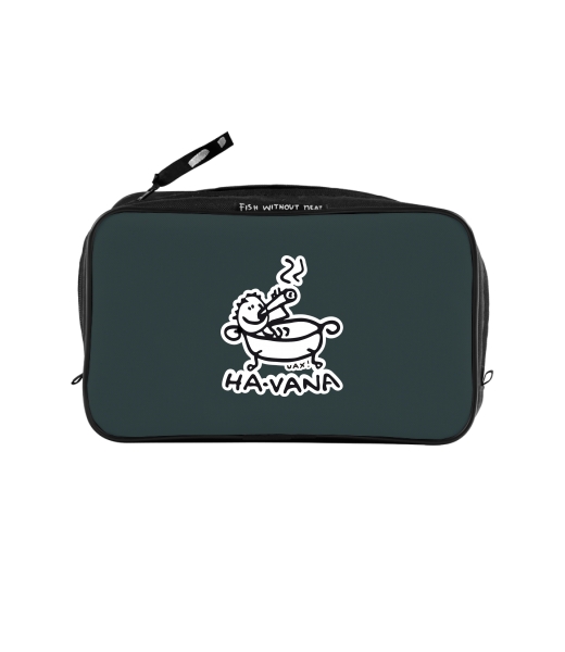 UAX Unisex sizes XL cosmetic bag with printing and pocket with design 1043 HA-VANA in color GREY INK