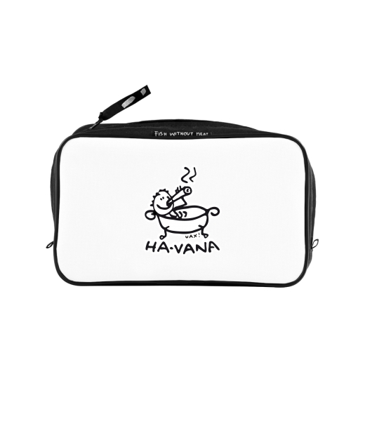 UAX Unisex sizes XL cosmetic bag with printing and pocket with design 1043 HA-VANA in color WHITE