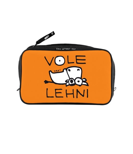 UAX Unisex sizes XL cosmetic bag with printing and pocket with design 1045 VOLE LEHNI in color SIGNAL ORANGE