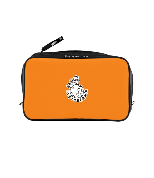 UAX Unisex sizes XL cosmetic bag with printing and pocket with design 1047 SVĚTOBĚŽNÍK in color SIGNAL ORANGE