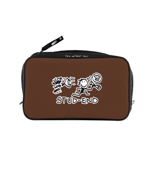 UAX Unisex sizes XL cosmetic bag with printing and pocket with design 1048 STUD-END in color BROWN SUGAR